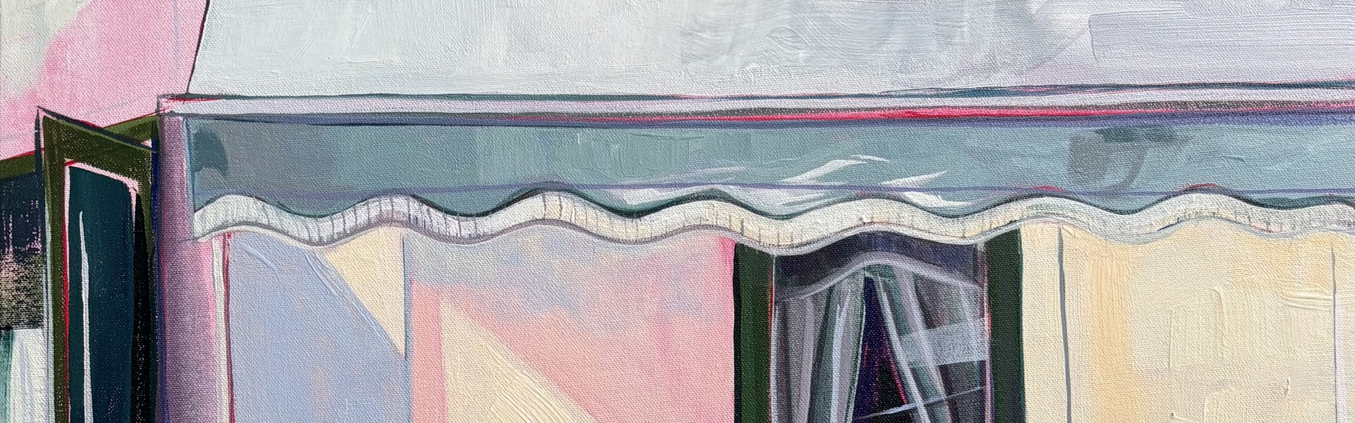 My process is intuitive and layered: each canvas begins with a wash of magenta before I build colour by hand, shaped by emotion and memory rather than replication. I aim to create open, reflective spaces that invite viewers to pause and shift their perspective.